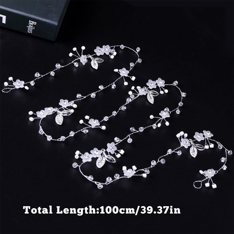 Axvxby Bridal Hair Band, Bridal Hair Accessories, Silver Crystal Headband, Bridal Hair Bands, Wedding Hair Accessories for Bride, Crystal Beads Flowers, Silver, 100 cm