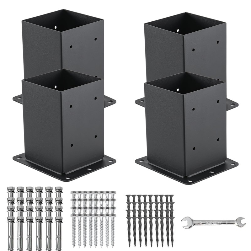 - Material Of 4x4 Post Base: Made of Solid Steel, Black Powder Coated, Rustproof and Strong.