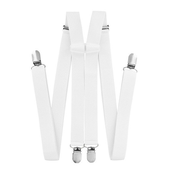 axy Braces for Men Wide 2.5 cm H Shape with 4 Braces Clips Extra Strong Adjustable Length, White