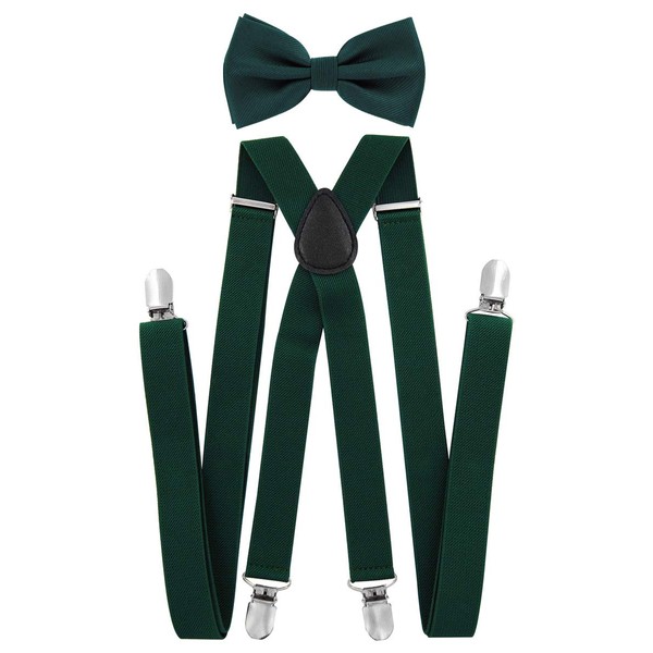 axy HFL1A Men's X-Shape Braces with Bow Tie Set - Pre-Tied 4 Strong Clips, Green (braces width 2.5 cm)