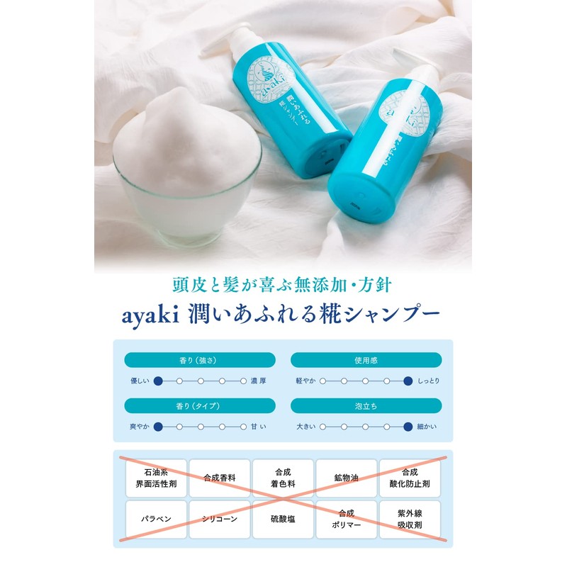 ayaki Moisturizing Koji Shampoo, Set of 2, Weak Acid, Amino Acid, No Rinse Required, 10.1 fl oz (300 ml) Moisturizing Rich Type (2 Pieces)