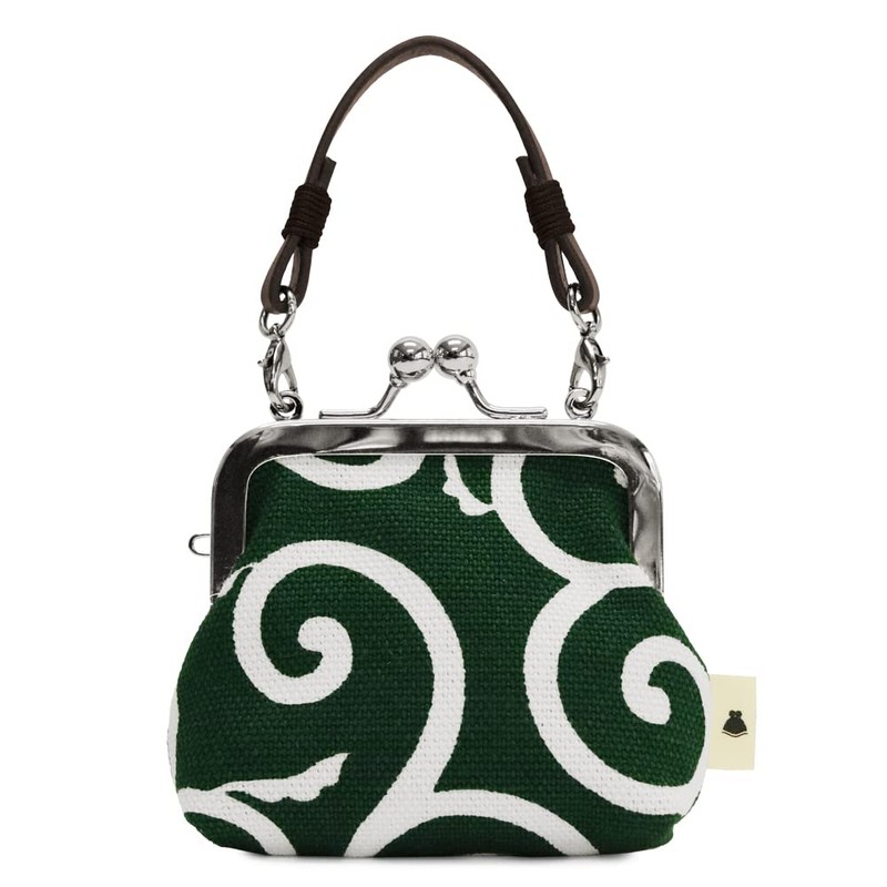 AYANOKOJI Leather Drawstring Handbag, Wallet, Small, Canvas, Arabesque, Polka Dot, Arabesque Midori