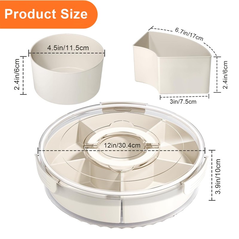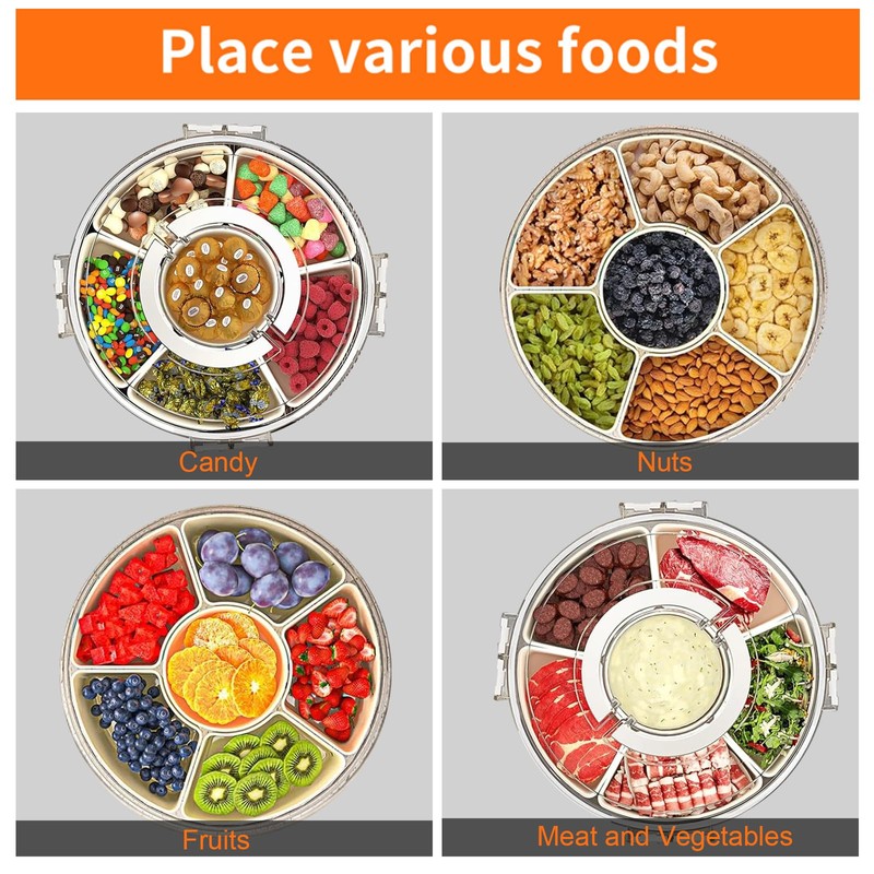 - Innovative Rotating Design: Effortlessly access snacks with a 360-degree rotating tray featuring 6 compartments, perfect for neatly separating various treats.