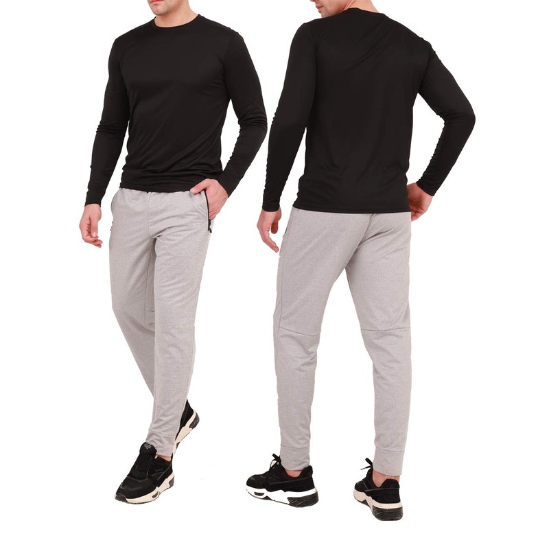 AyeGoo Men's Jogger Sweatpants,Men's Athletic Jogger Pants and Workout Jogger Pants with Zipper Pockets (2pcs Set) (Black/Light Grey Melange, M)