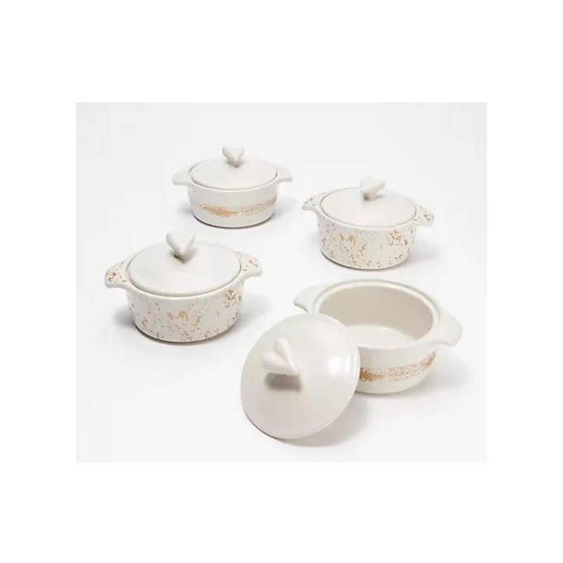 Ayesha Curry 4 Piece 10 Oz Mini Casseroles with Gold Detail