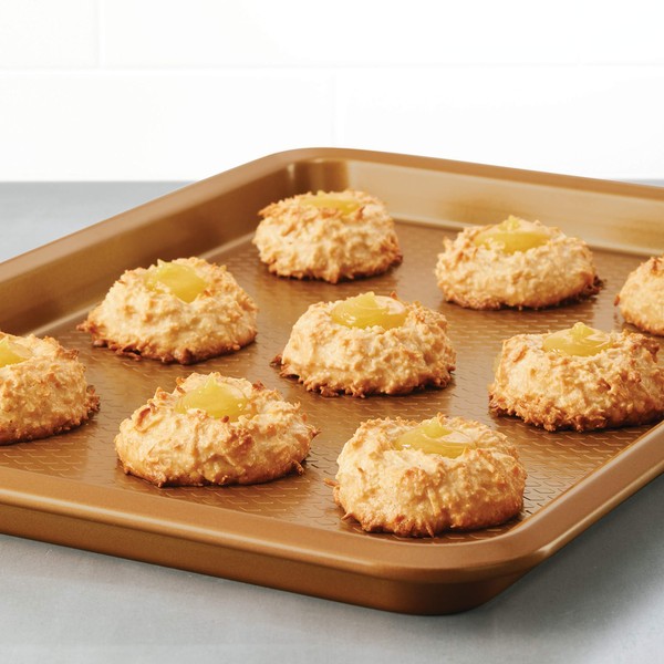 - SUPERIOR NONSTICK BAKING: Diamond textured interior cookie sheet surface and long-lasting, high-quality nonstick help promote even baking and browning and easier food release.