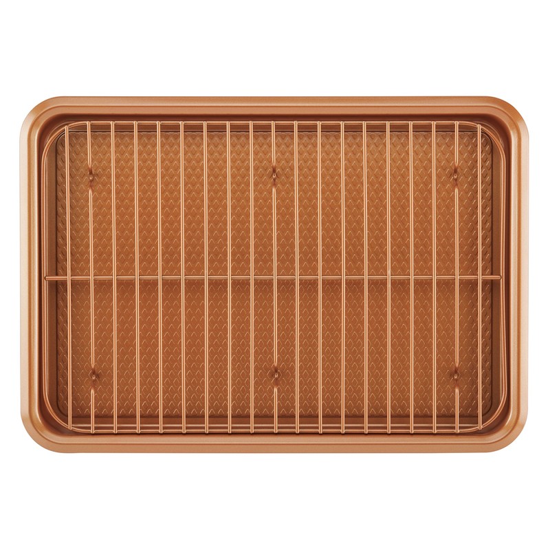 Ayesha Curry Nonstick Bakeware Set with Nonstick Cookie Sheet / Baking Sheet and Cooling Rack - 2 Piece, Copper Brown