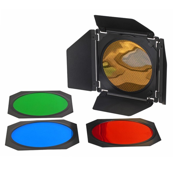 ayex Studio Barn Door Set - Large Barn Door with Honeycomb Attachment and Colour Filters