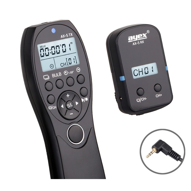 ayex Wireless Timer Remote Shutter Release AX-5, Compatible with Canon (E3) e.g. EOS R R6 RP RA 2000D 1000D 1500D 850D 90D 250D R6 M6 Mark II - Low/High Speed Continuous Images, Bulb, Timed Trigger