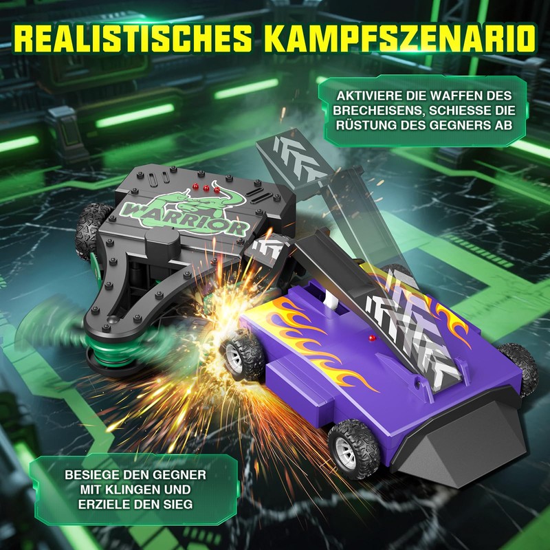 - 【Set of 2 EPic RC Battle Cars】: Experience thrilling 1-on-1 duels with 2 remote controlled battle cars and vibrating dual controllers! Each car has unique attack modes so children can fight tactical battles. Perfect for action-packed duels - these RC cars guarantee endless fun