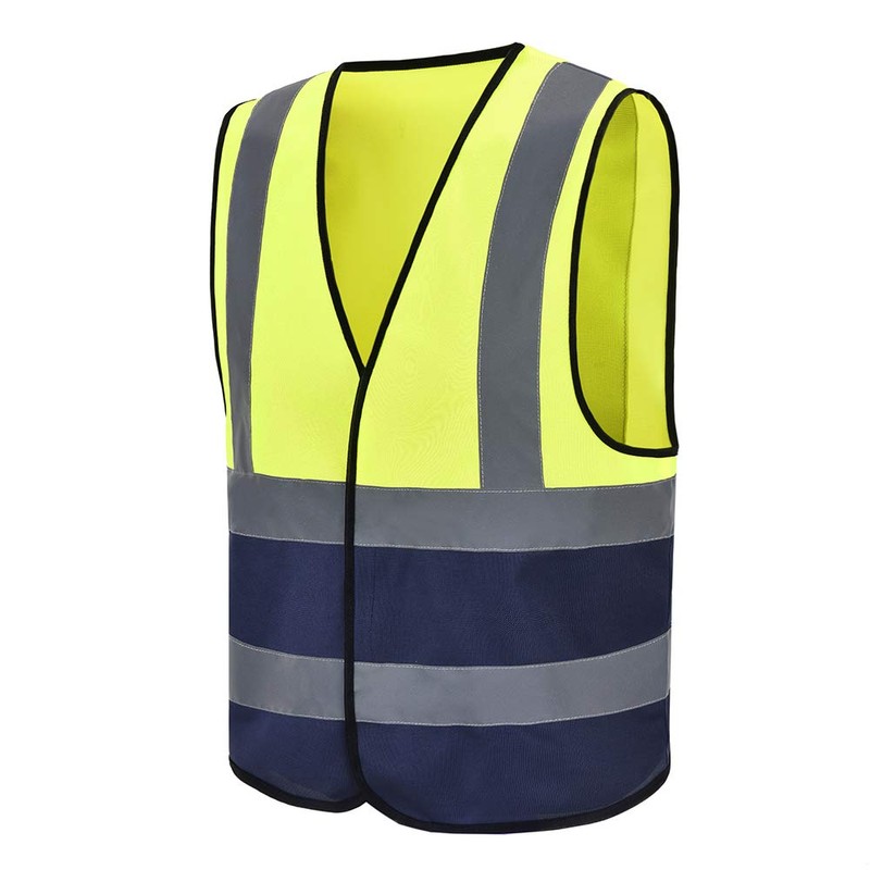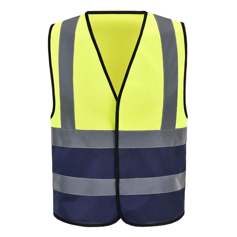 AYKRM High Visibility Safety Vest with Reflective Strips and Yellow & Navy Design - S/M/L/XL/XXL/XXXL Available for Men and Women