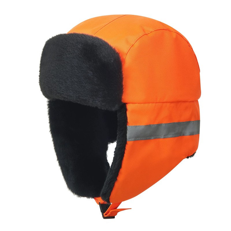 AYKRM Orange Wooly hat High Visibility Viz Keep Warm Trapper Bomber hat Orange Fleece hat(61CM, Orange)