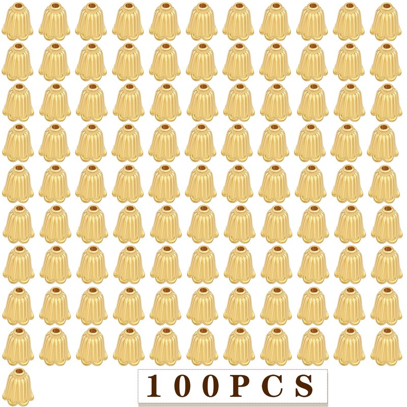 Aylifu 100pcs Flower Beads Caps Alloy Flower End Caps Loose Spacer Beads Cones Jewelry Making Accessories for DIY Earrings Bracelet Crafts Decor, Golden