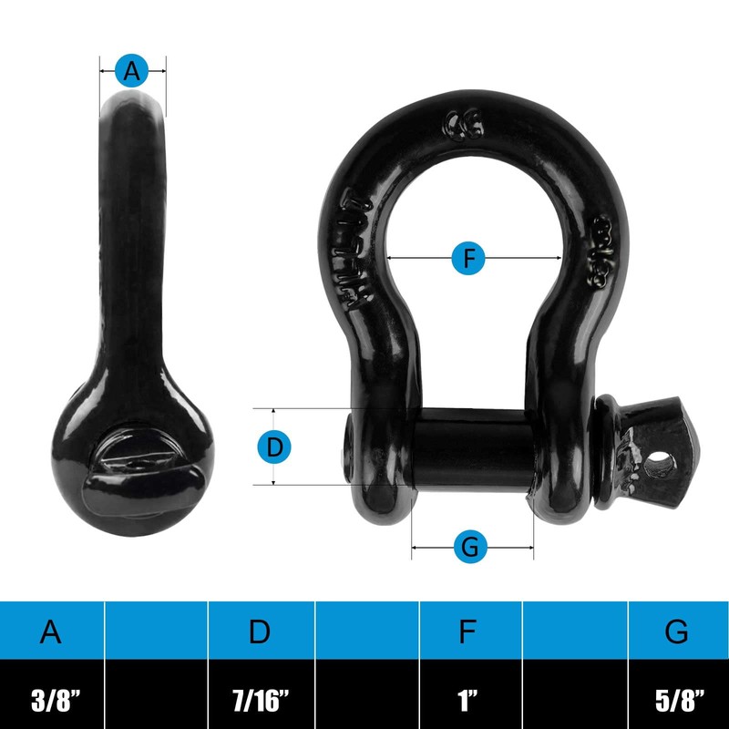 • PRODUCT SPECIFICATIONS: (10 Pack) 3/8 Inch D Ring Bow Shackle, Black