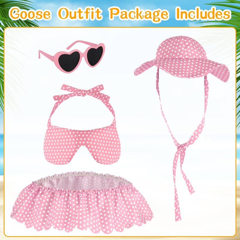 - Porch Goose Costume: Our summer porch goose outfits include 1 hat, 1 pink bikini, 1 pink skirt and 1 pink heart sunglasses, designed for 23 inch meadow geese in Hawaii(The meadow goose is not included)