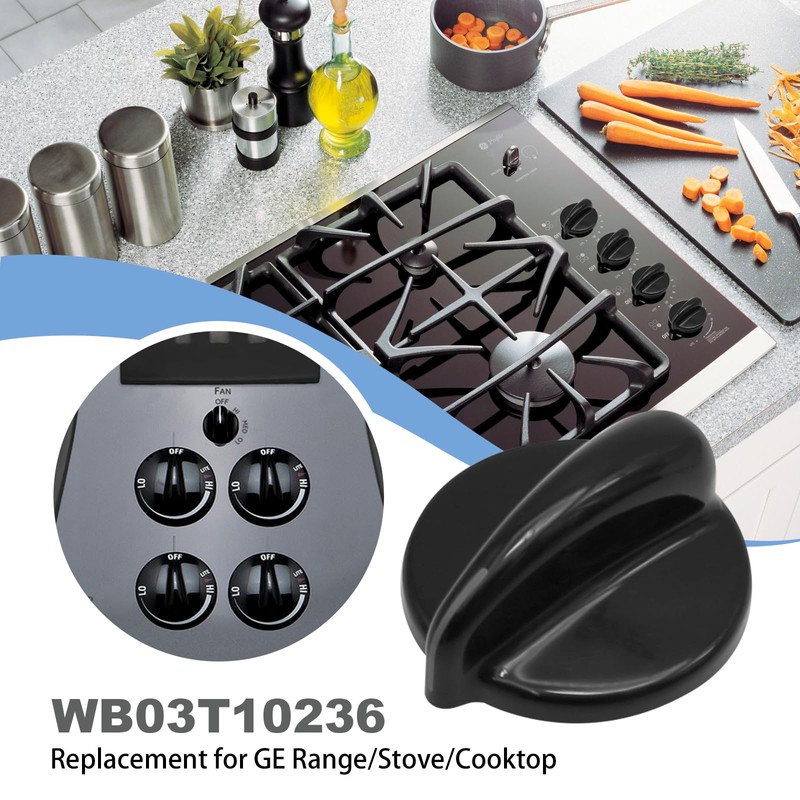 Aynaxcol 4 Pcs WB03T10236 Burner Control Knob Black Cooktop Knobs Gas Range K...