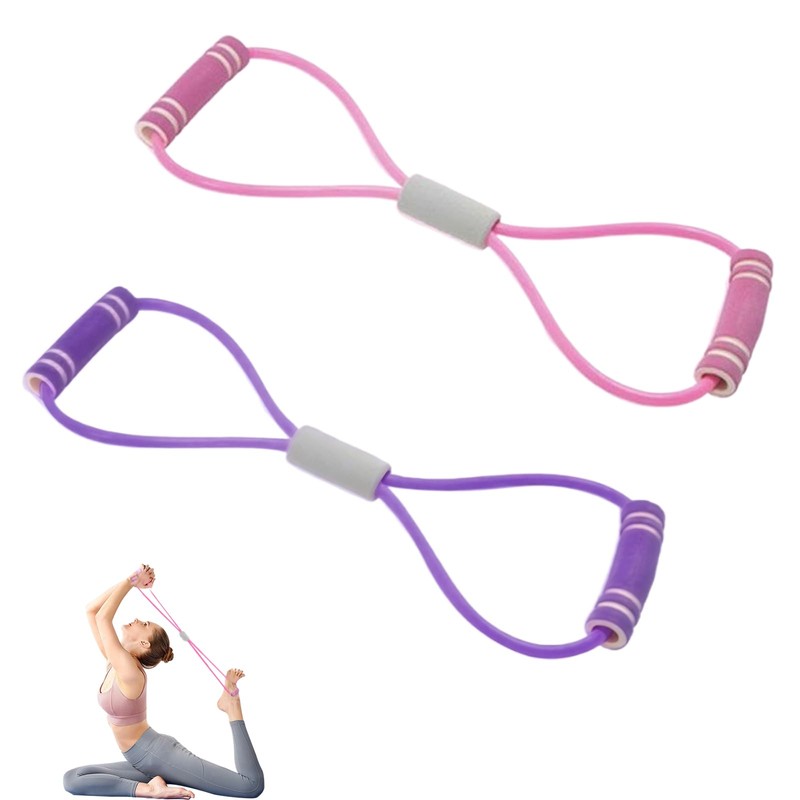 AYNKH 2 Arm Figure of 8 Resistance Bands, Handle Resistance Bands, Chest Extender, Yoga Gym Fitness Pull Cord für Arm und Schulter Stretching Krafttraining, Pink und Lila