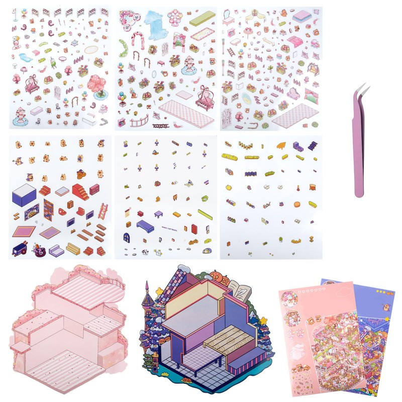 - 1.Immersive 3D Large Scene: This set of stickers brings you a super shocking 3D visual experience, with a dream castle, Kappi magic house, oversized version of the funny cartoon scenes based on the size of the stickers, rich in detail, to create an immersive scene to build fun.