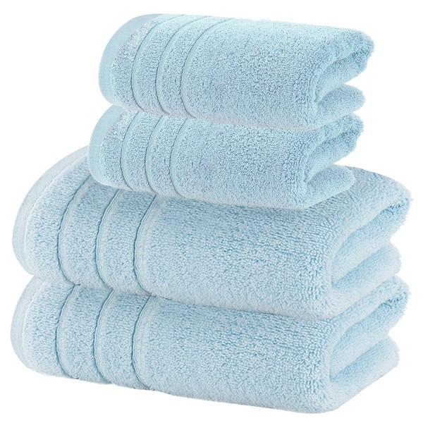 AYO バスタオル フェイスタオル 綿100% ホテル仕様 4枚セット ふわふわ 速乾 瞬間吸水 無地 耐久性 毛羽落ち少ない 家庭用【バスタオル 60*120cm 2枚+フェイスタオル 34*80cm 2枚 ヘイズブルー】