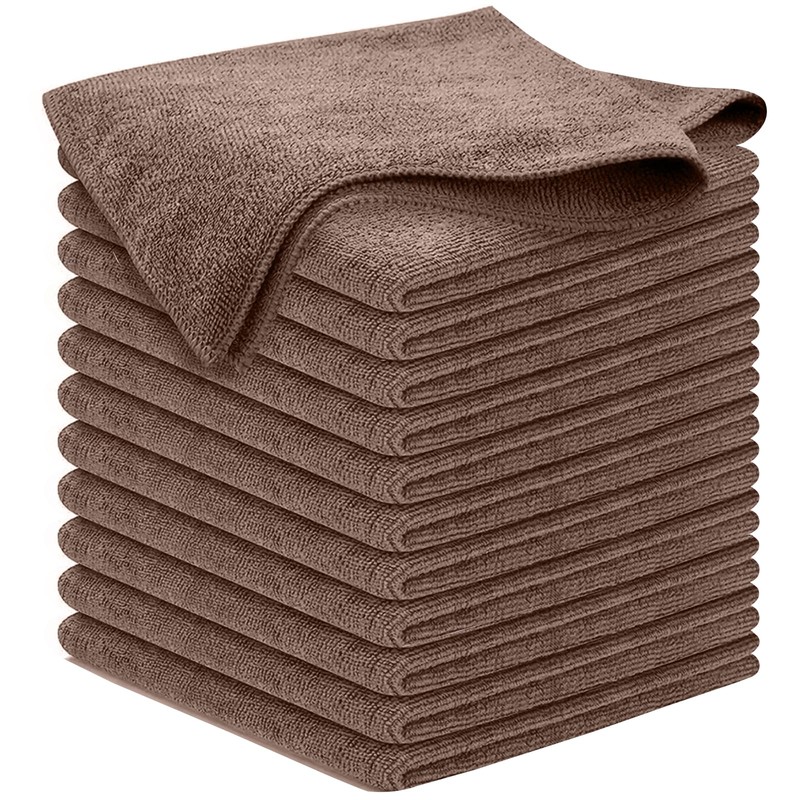 AYO マイクロファイバークロス ふきん キッチン 12枚(約31×31cm) 台拭き キッチンクロス 洗車タオル【ブラウン】