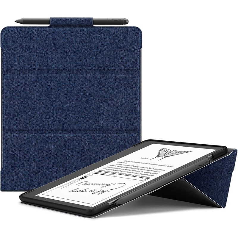 Ayotu Stand Case for Kindle Scribe 10.2 Inch (2024/2022 Released) - Auto Sleep/Wake, Premium Sturdy Fabric Cover with Pen Holder, Only for 10.2" Kindle Scribe, Blue