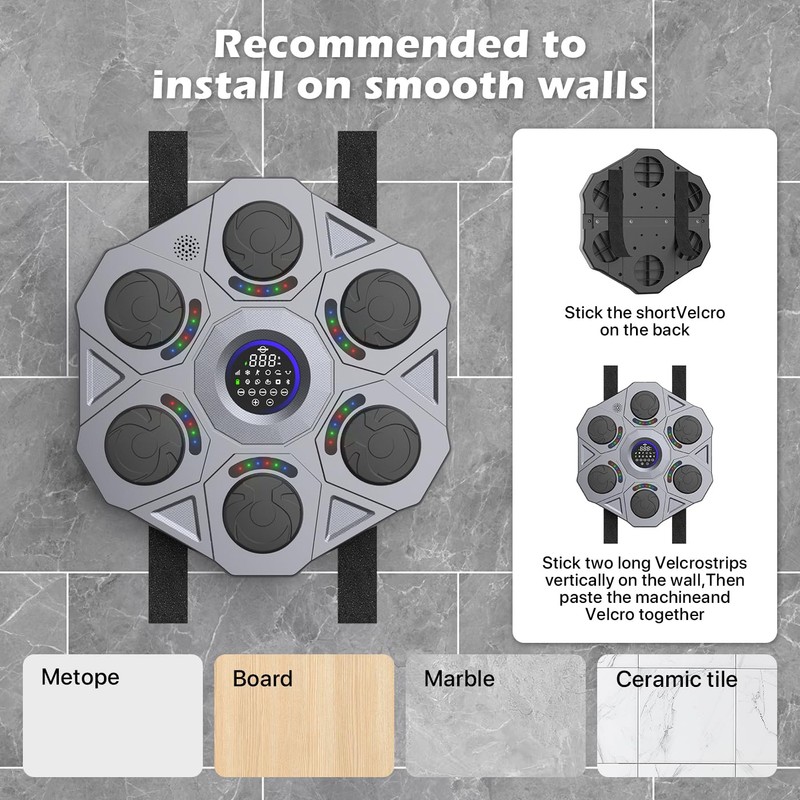 - TWO MOUNTING METHODS: You can use two sets of Velcro to fix the music boxing machine to the wall. The other way is to use screws to mount the music boxer to the wall. The installation process is simple and flexible, you can choose the installation method that best suits your needs and the type of wall material.