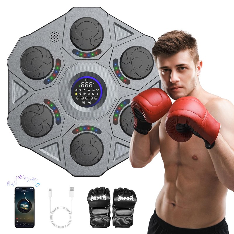 - CUSTOMER SERVICE - Contents: musical boxing machine, a pair of boxing gloves, 4 velcro straps, USB cable. If there is any problem with the product, please feel free to contact us, we provide one year after-sales service.