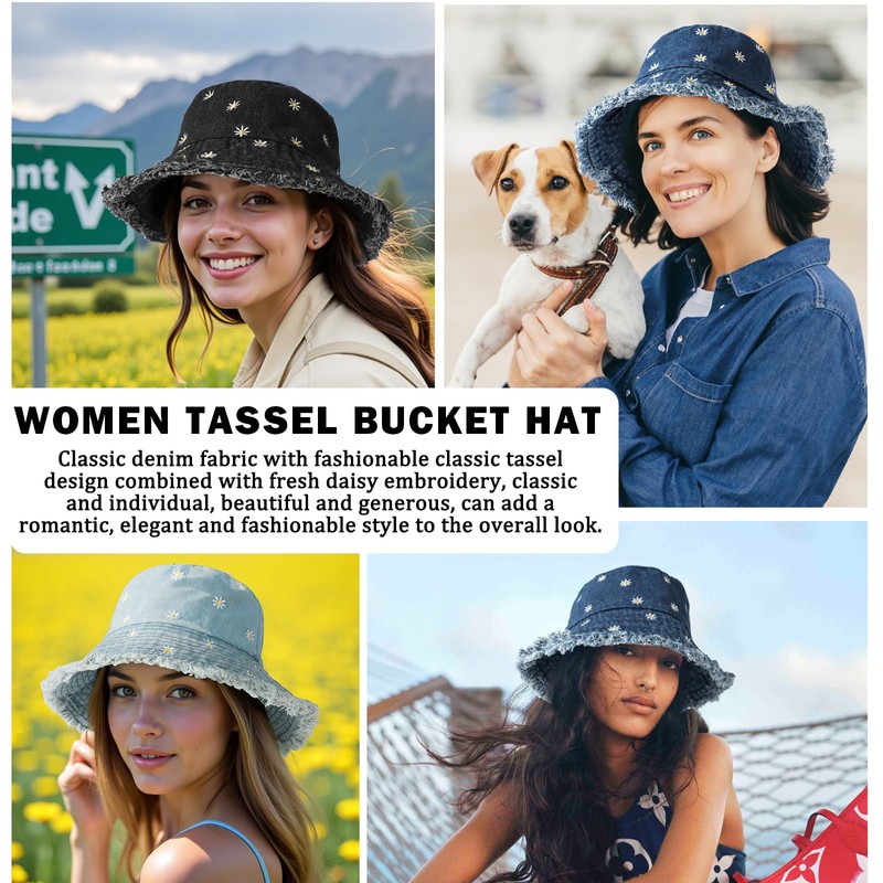 - 【Various Styles】The classic denim hat is available in light blue, dark blue, and black. It can be matched with a variety of styles and scenes, such as casual shirts, retro denim clothes, and floral skirts. It instantly enhances your sense of fashion and beauty, and easily creates a unique summer look. The frayed edge design adds a sense of agility to the overall look, making it stand out whether you are taking photos, going out shopping, or at a party.