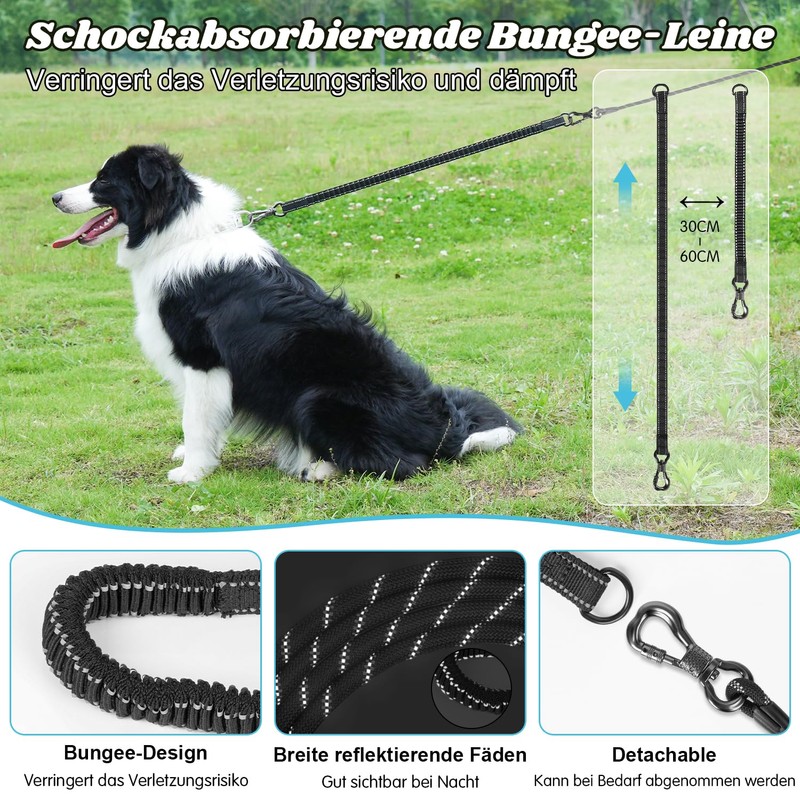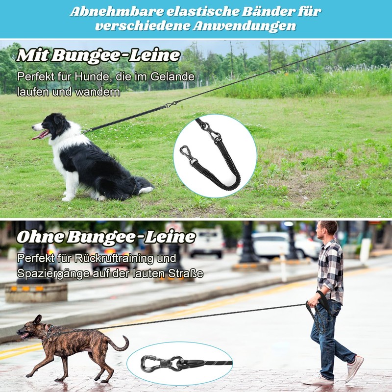 - The removable bungee lead can be used as a simple recall lead or as a shock-absorbing running lead for dogs. The bungee section is definitely helpful and reduces the effects of pulling, it makes walks and daily walks much more enjoyable for the dog and its owner.
