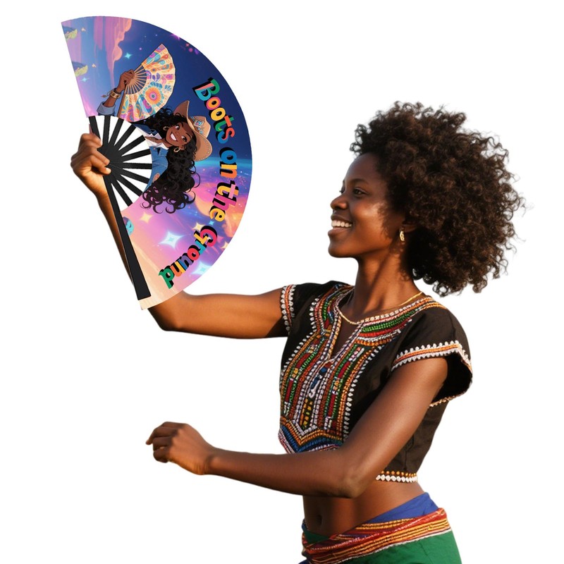 AYTHSRIC 13 inch Line Dance Popping Fan, Where Them Fans at Clack Fan, Boots On The Ground, Large Festival Folding Fans, Pop Fans for Women Foldable Wedding Dance Church Party (Style A)