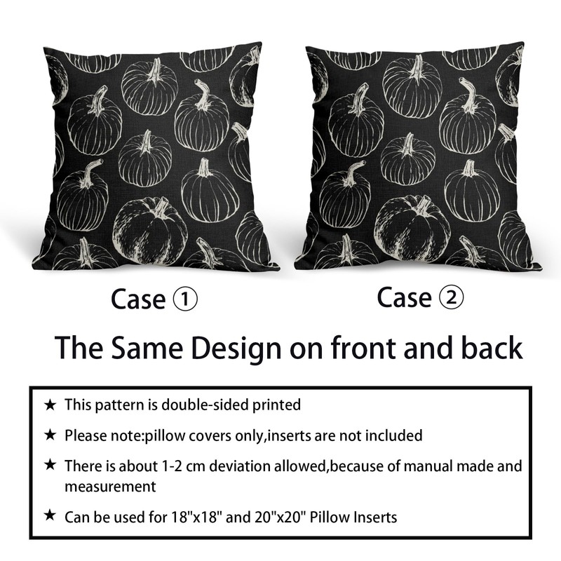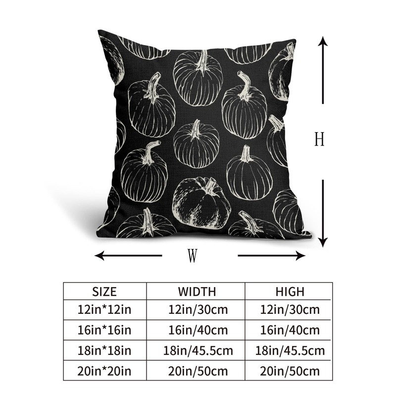 - Size: 18x18 inches (45cm X 45cm).Our fall pumpkin pillow covers are printed with the same graphic design on both sides, so you can place them however you like. Our pumpkin throw pillow covers feature invisible zippers that blend in with the pattern, smooth zippers, and superb stitching for easy insertion and removal, delivering impeccable beauty.