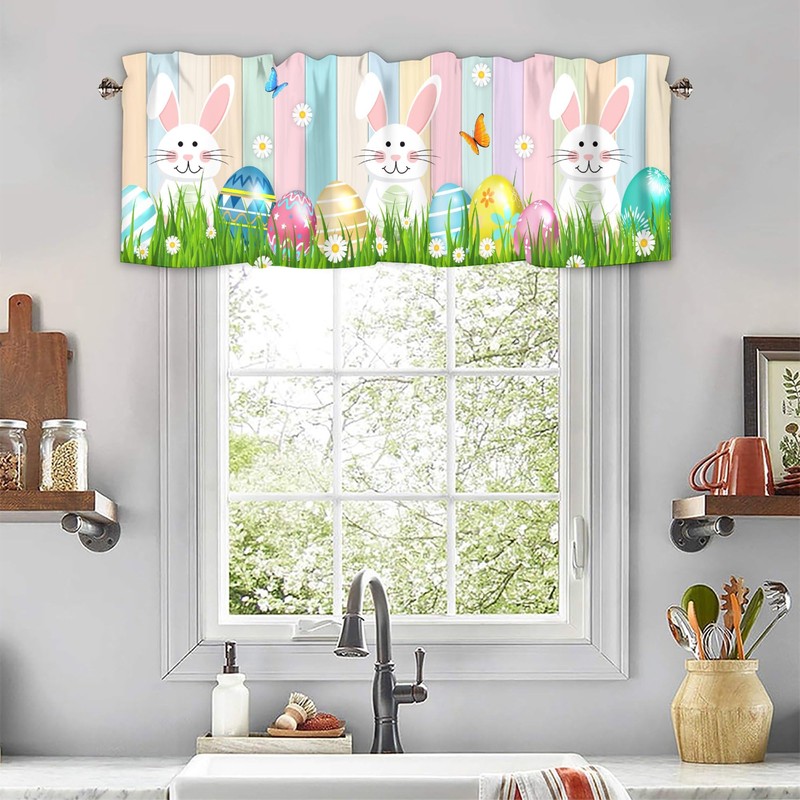 - QUALITY FABRIC: These Eggs Bunny Cute Rabbits kitchen valances are made of durable polyester blend fabric with delicate printed, these valances are light filtering and allow a bit of light to still come through.