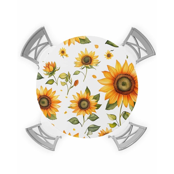 AYTTBIS Sunflower Watercolor Round Fitted Tablecloth with Elastic,Waterproof Oil Proof Table Cover,36-44 Round Spring Fitted Tablecloth for Tables Dinner, Outdoor, Picnic