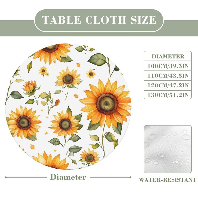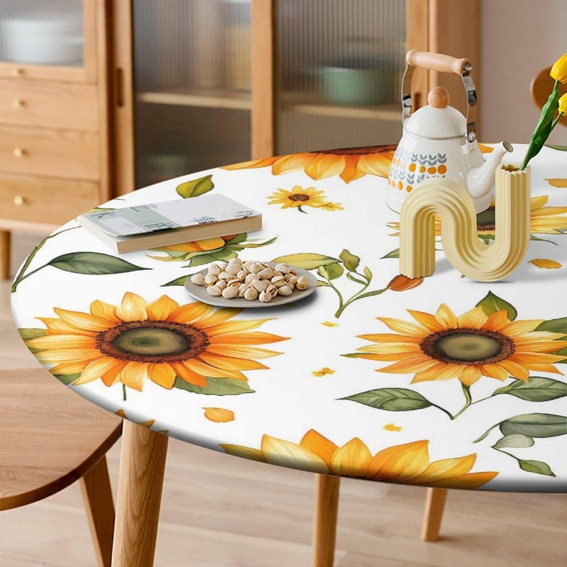 - Oil-proof, and Scratch-resistant Design: This Sunflower Watercolor round fitted tablecloth with elastic can effectively protect your table from scratches. Made of waterproof and oil-proof material, it effectively prevents oil and water from leaking onto the table.