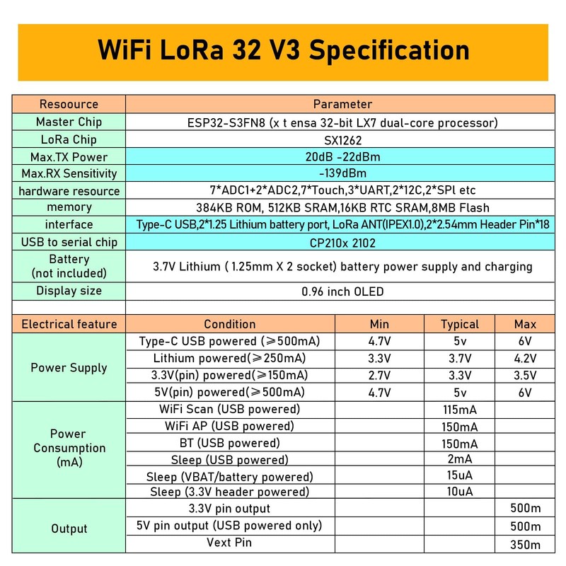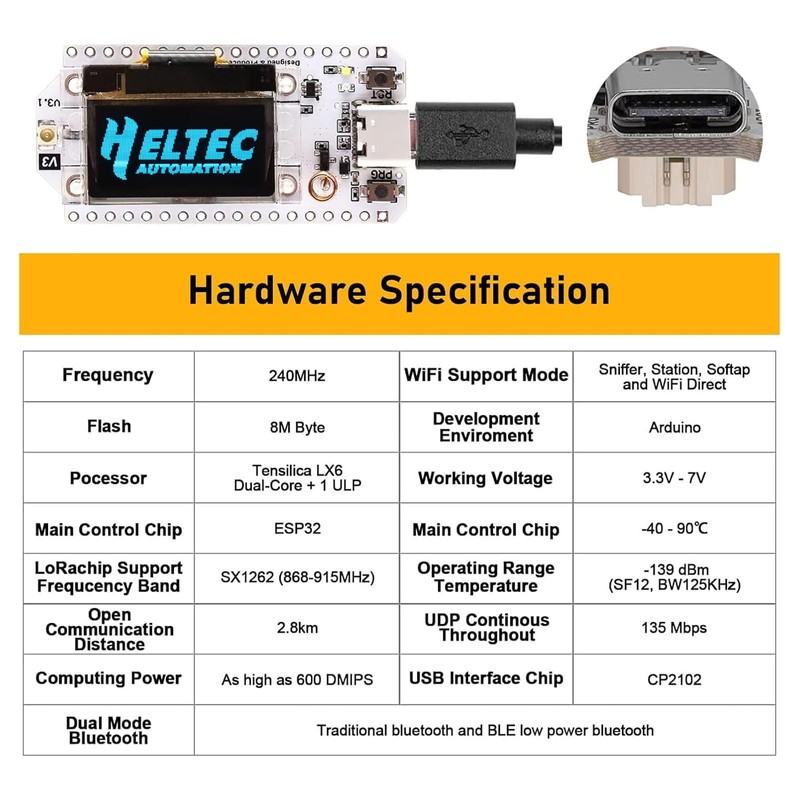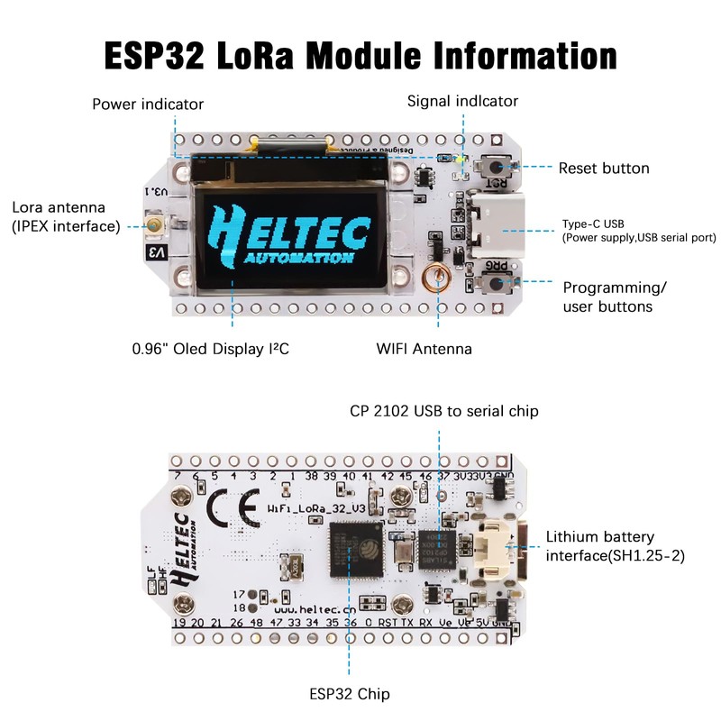 - Easy to Use: Reserved IPEX (U.FL) interface for LoRa use. Integrated CP2102 USB to serial port chip, convenient for program downloading, debugging information printing.