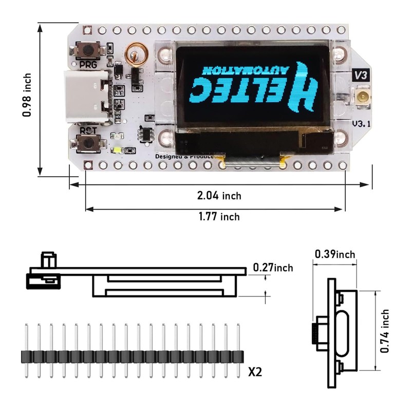 - 0.96inch OLED Display: The LoRa ESP32 development board is equipped with a 0.96-inch OLED display to show debugging information, battery operation and other information.