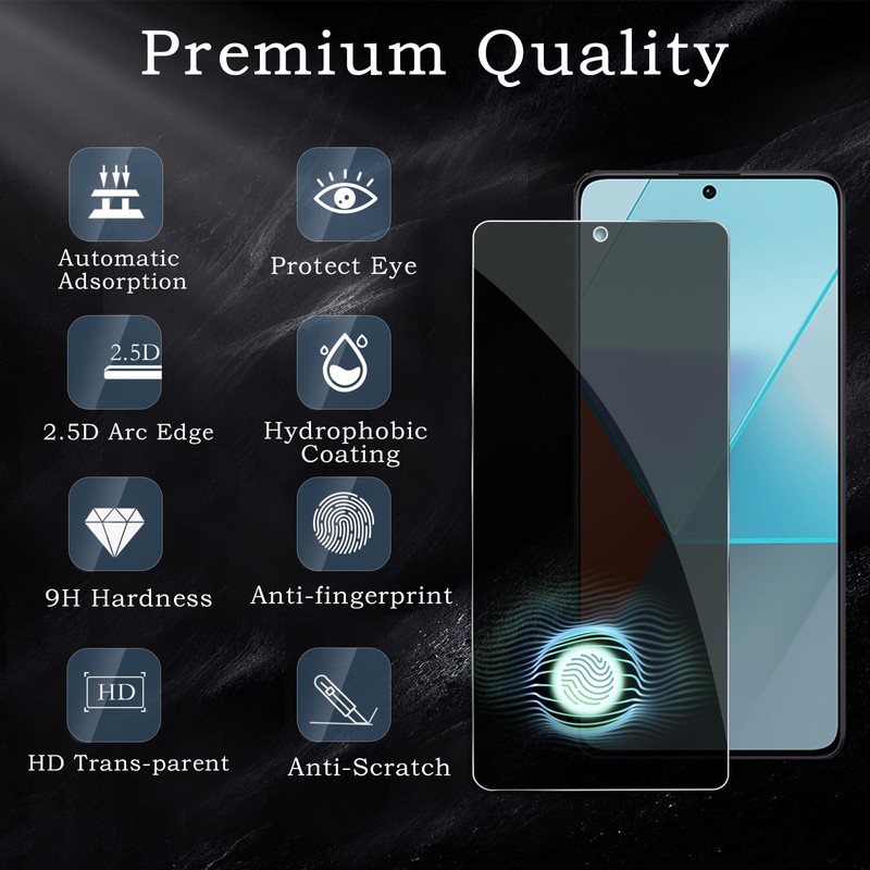 • 【Designed for Xiaomi Redmi Note 13 Pro 5G】- This Privacy tempered glass screen protector is specially designed for Xiaomi Redmi Note 13 Pro 5G, include 2 Pack privacy screen protector+2 Pack Tempered Camera Lens protector, perfectly fits your screen and offers great protection to your iPhone.