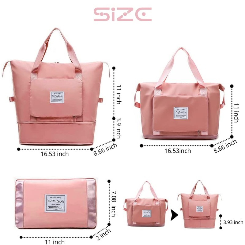 This large capacity folding travel bag can be folded or expanded in three sizes at the bottom according to your needs. Large capacity size H*W*L: (15in x 8.7in x 16.5in); Normal size H*W*L: (11in x 8.7in x 16.5in); Easy to carry and folded size H*W*L:(7.1in x 1.6in x 11in); Three sizes to meet all your needs.