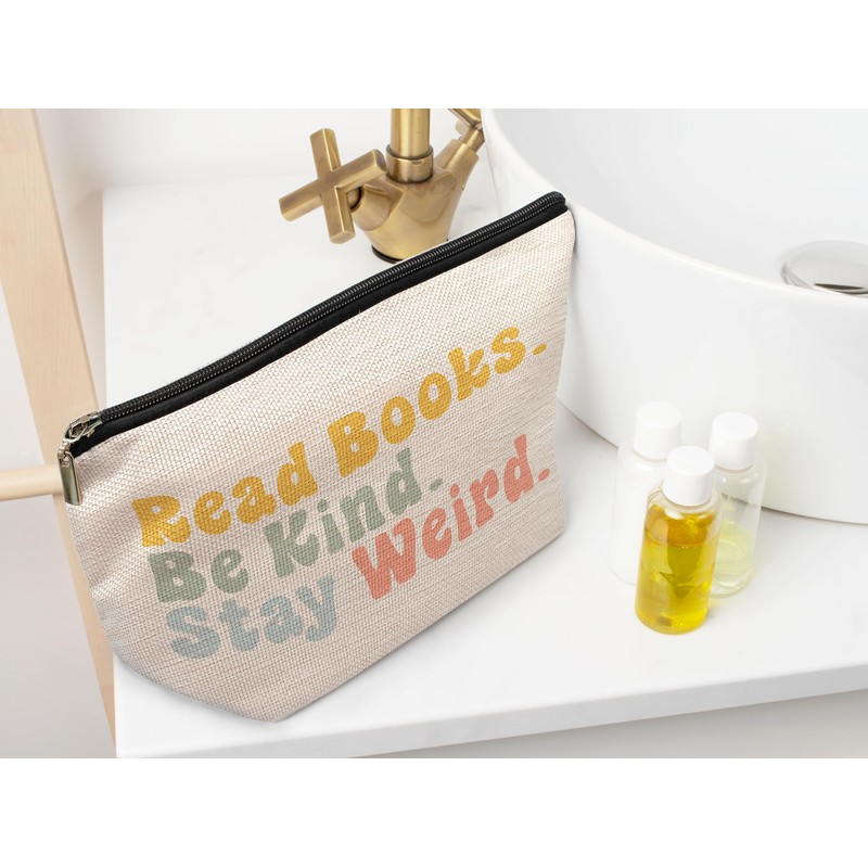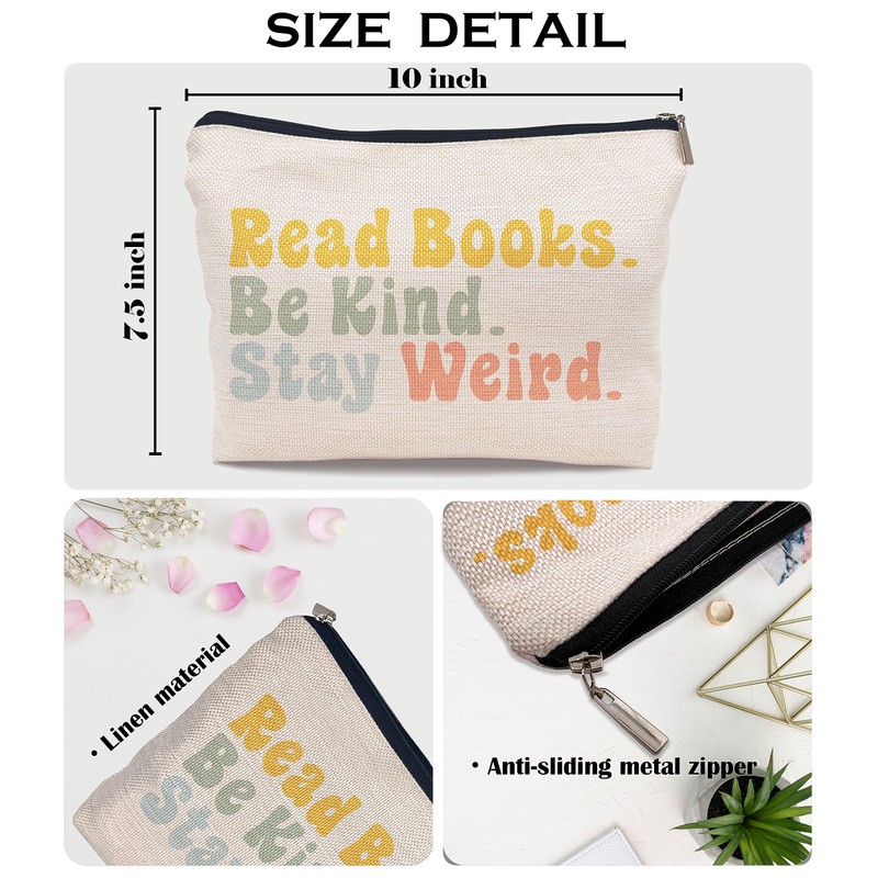 Ayxvt Book Lovers Gifts Makeup Bag,Book Lover Gifts for Women,Read Books Be Kind Stay Weird Small Makeup Bag,Gifts for Book Readers Bookworms Women