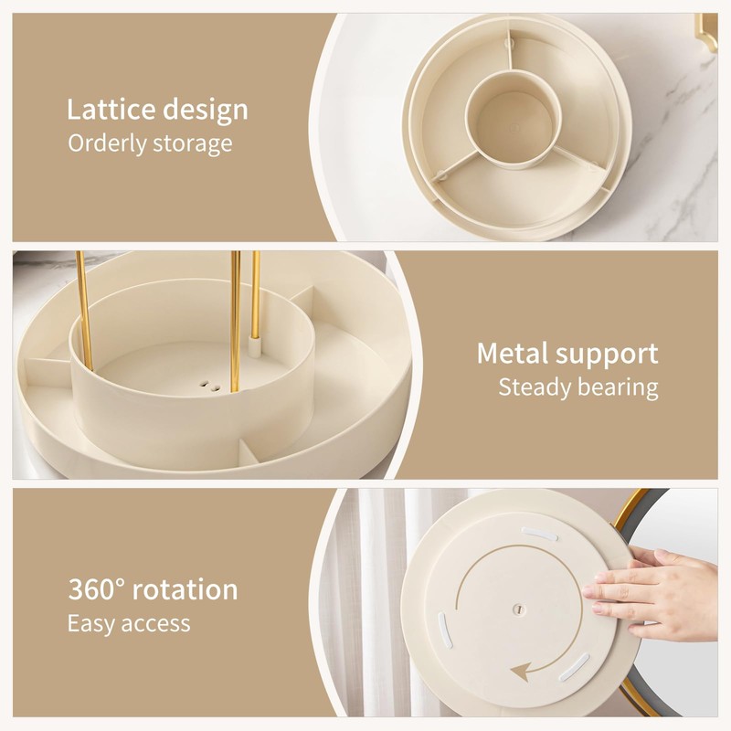 - Large capacity: with a diameter of 25.2 cm and a height of 28.7 cm, it has a large storage capacity and does not take up table space. The large capacity of the beauty organiser can hold your cosmetics, such as lipstick, nail polish, brush, perfume, shampoo, skin lotion, face, etc. Perfect storage. This cosmetic box can save your space and keep your living space clean.