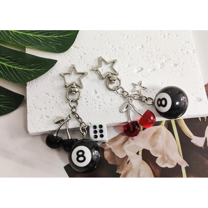 AYYSHULAN Black Lucky Dice Cherry 8 Ball Keychain Star Bags Charms Cute Y2k Aesthetic Accessory for Keys Women Men