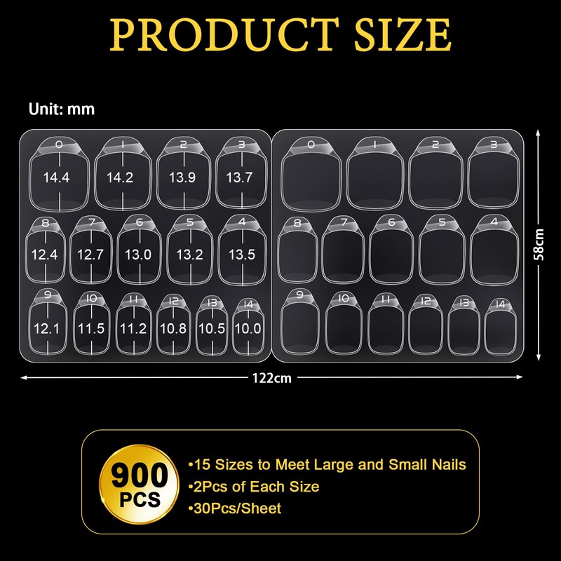 - 15 Sizes for a Perfect Fit: Includes 900 adhesive tabs (30 tabs/sheet) in 15 sizes, ensuring a snug fit for nails of all shapes and sizes. Ideal for both large and small nails