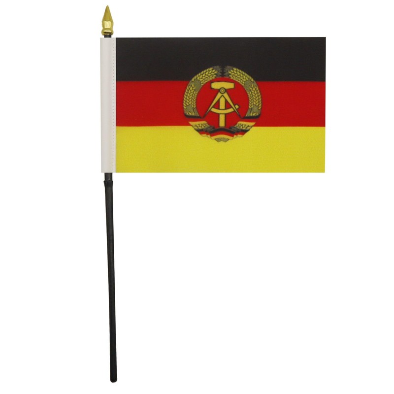 AZ FLAG - East Germany Table Flag 4'' x 6'' - German RDA Mini Desk Flag 100% Polyester 15 x 10 cm - Office Flag with 10'' Pole - Golden Spear