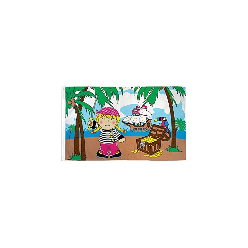 AZ FLAG - Girl Pirate Island in Treasure Flag - 150 x 90 cm - Pirate Skull Flag 100% Polyester with Brass Eyelets - 110 g