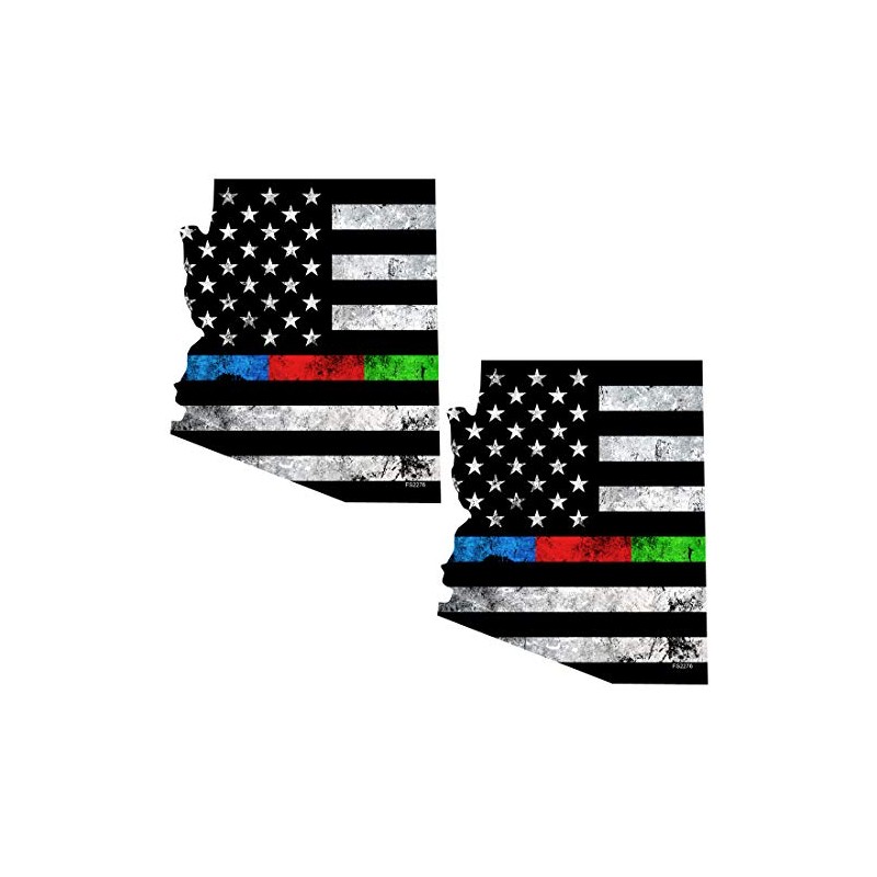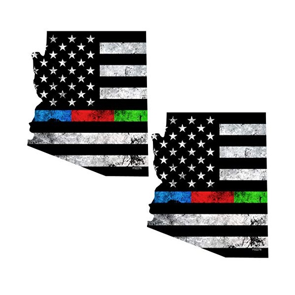 AZ State Thin Blue RED Green Line Flag 2 Pack Stickers