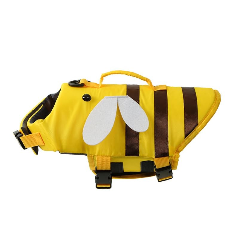 AZA Dog Life Jacket Shark Life Vest with Rescue Handle Cute Bees Costume Girl Adjustable High Buoyancy Swimwear for Small Medium Large Dogs Boy Swimsuit Clothes for Pets (S,Bees)