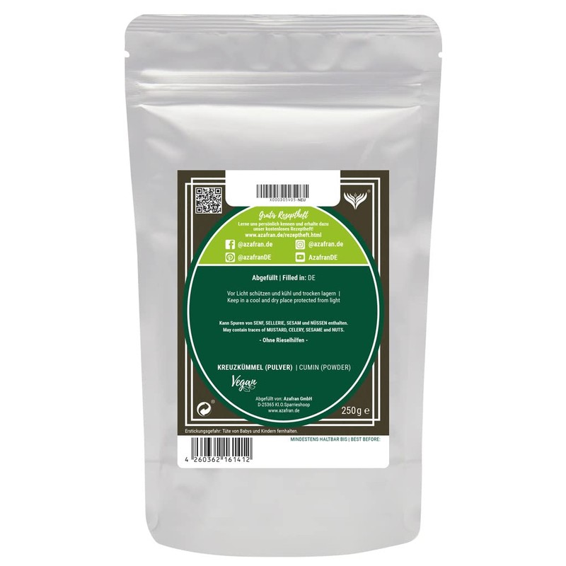• Azafran Cumin is intense in smell and taste. It is freshly ground and bottled in Germany. It is without the addition of flavour enhancers and artificial flavours.