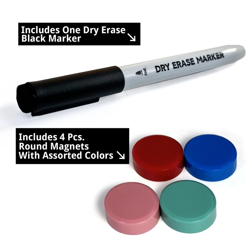 - Complete Starter Kit Included: Comes with 4 colorful magnets and 1 black dry-erase marker so you can start using it right out of the box.