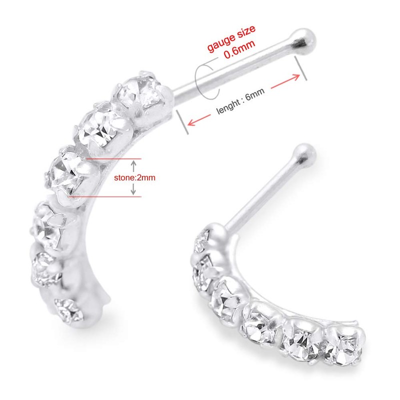 - Lavender Crystal Stone 6 Round Crystal Stone Curved Design 22 Gauge Sterling Silver Ball End Nose Stud Piercing. Made from 925 Sterling Silver with Crystal Gemstones , Quantity 1 Piece , this nose stud is the perfect piercing to wear everyday, a comfortable fit that will help give you that extra sparkle daily