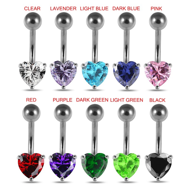 - Clear Gemstone Trendy Heart Design Sterling Silver Belly Bars Piercing. Made from 925 Sterling Silver with Cubic Zirconia Gemstone and 316L Surgical Steel , this belly bar is the perfect piercing to wear everyday, a comfortable fit that will help give you that extra sparkle daily
